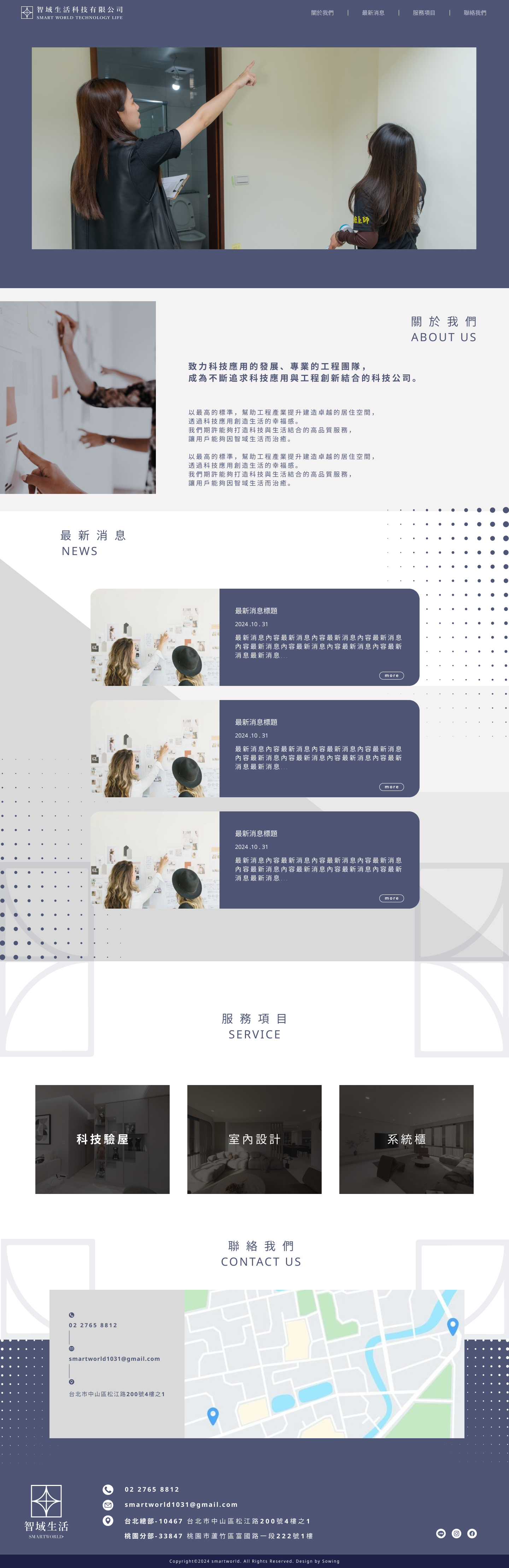 Front pageDesign Cases智域生活科技有限公司官方網站Front pageDesign Cases智域生活科技有限公司官方網站智域生活科技有限公司官方網站Description智域生活科技官方網站,提供科技驗屋、室內設計與系統櫃整合服務,以專業檢測與設計實踐高品質居家生活。TechnologyRWD響應式網頁設計 | Responsive Web Design企業形象科技驗屋生活空間優化居家科技服務造訪網站(另開新視窗)真耶穌教會東北區辦事處