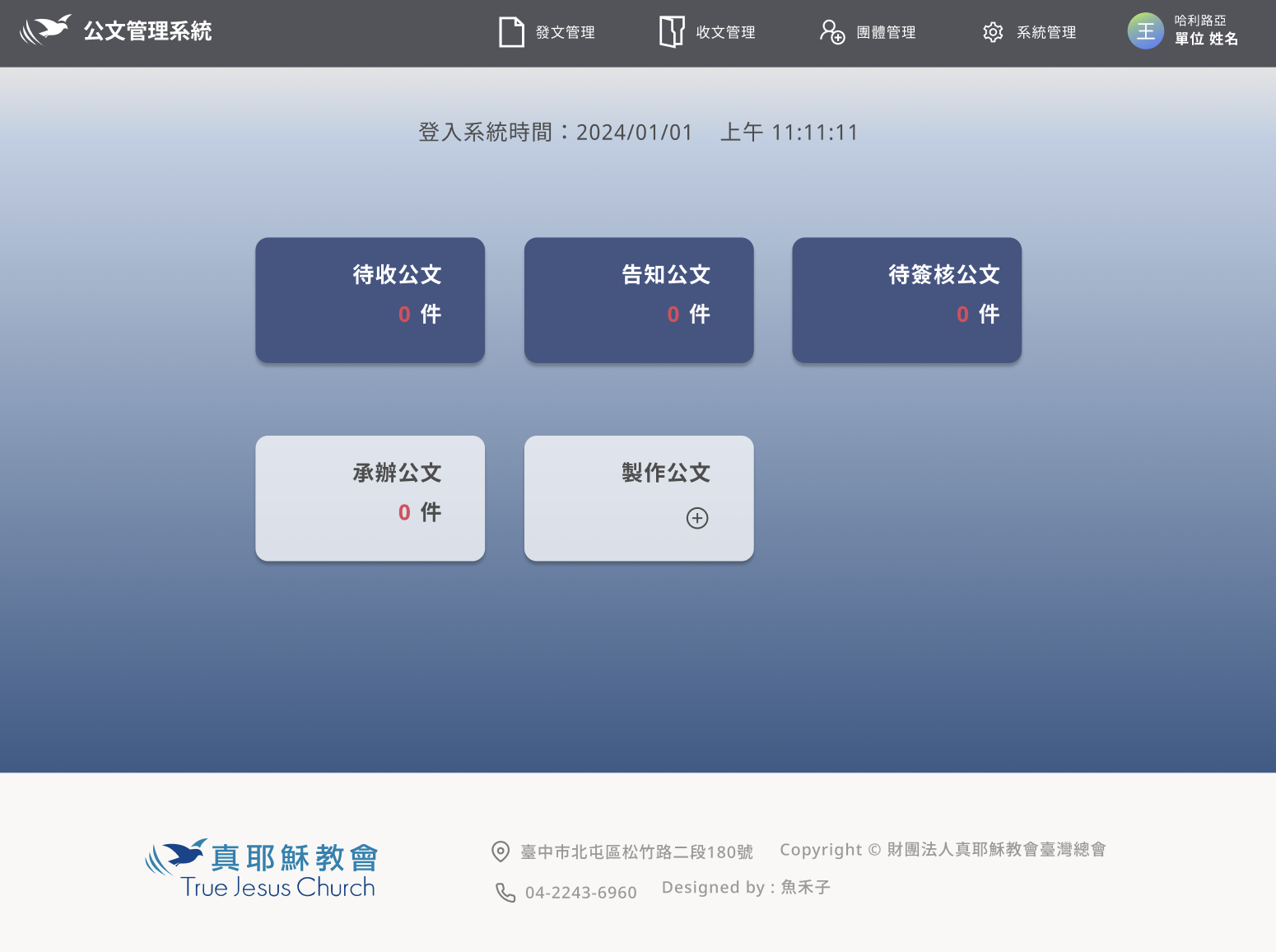 Front pageDesign Cases企業內部行政公文管理系統Front pageDesign Cases企業內部行政公文管理系統企業內部行政公文管理系統Description企業內部行政公文管理系統,用於線上處理與簽核各類公文的行政平臺。TechnologyUI/UX視覺設計 | User Interface / User Experience行政管理真耶穌教會東北區辦事處
